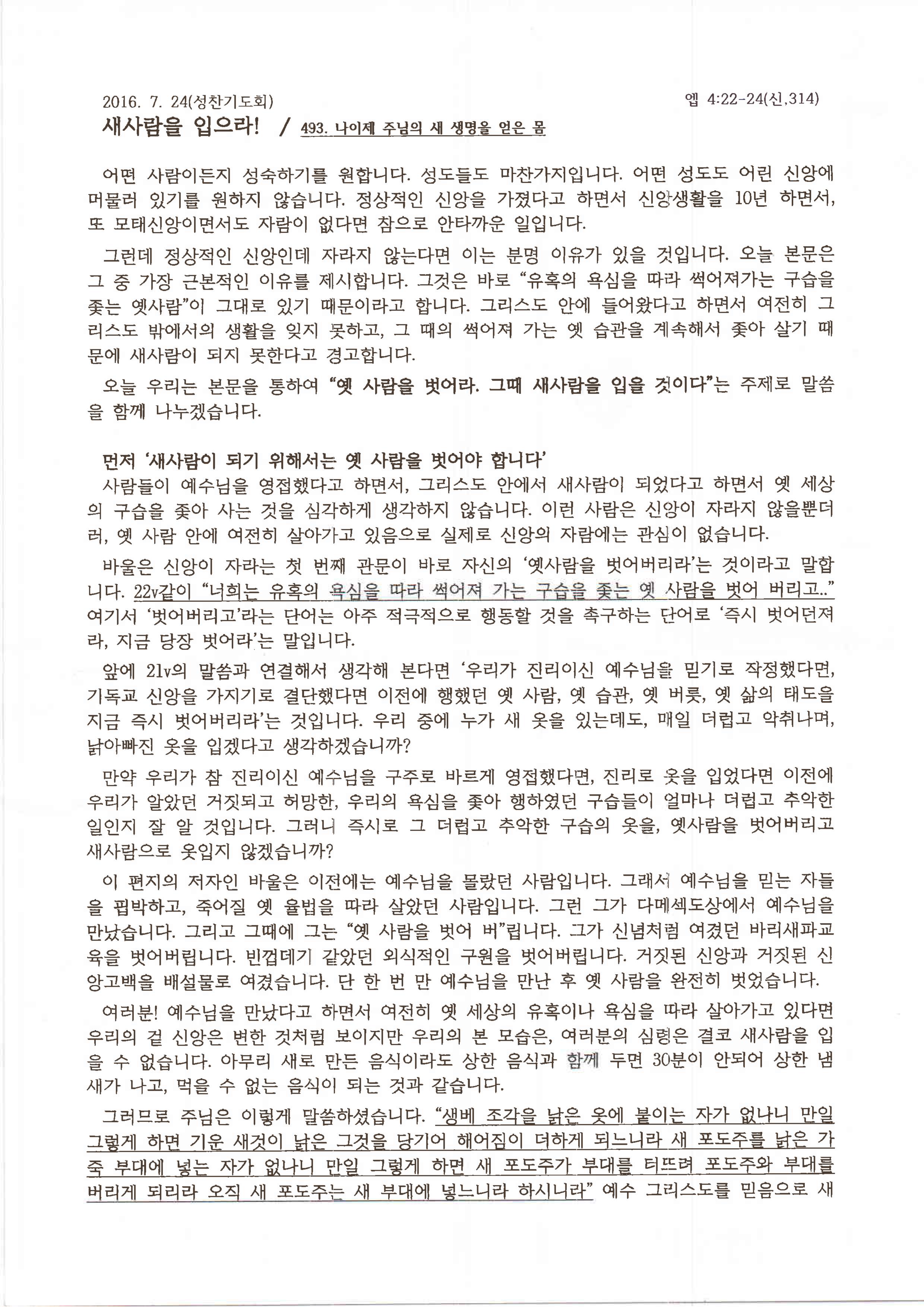 2016.07.24. 오후설교[성찬조별기도회]-새 사람을 입으라